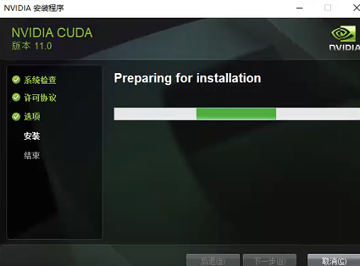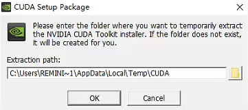 运行CUDA 11.0 安装程序,会提示解压缩,点击OK即可