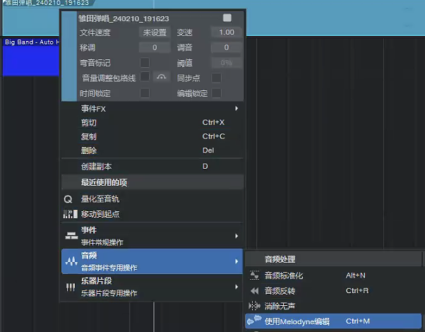 使用Studio One 6打开任意一条音频内容,在音频中选择使用Melodyne编辑,成功唤醒即可