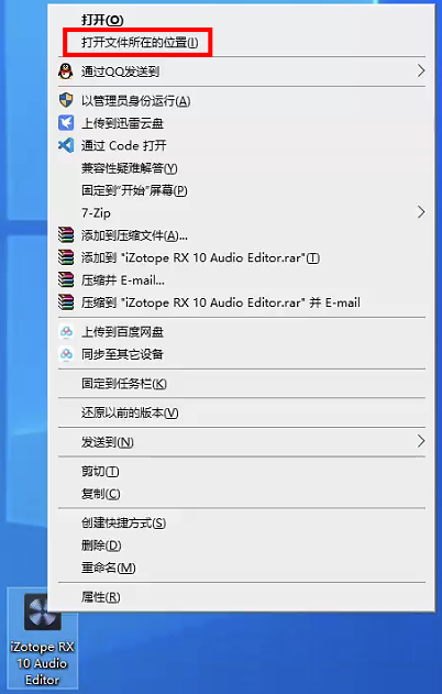 安装完成后,找到桌面上的 iZotope RX 10图标,右键单击,打开文件位置