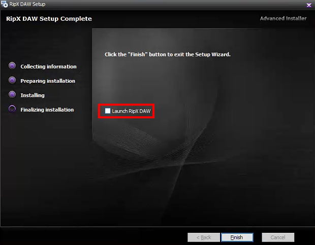 取消勾选☑️Launch RipX DAW并点击Finish完成安装
