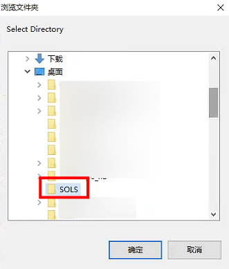 在你喜欢的地方新建一个SOLS文件夹,需要英文,弹出窗口中选择这个文件夹