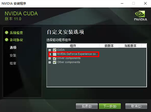取消勾选 Geforce Experience,点击下一步