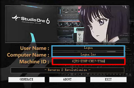 在安装包路径\Studio.One.Pro.6.5.2\R2R找到StudioOne注册机.exe,双击运行,红框位置贴上激活码,蓝框位置写自己喜欢的名字就行了,写好后点击GENERATE
